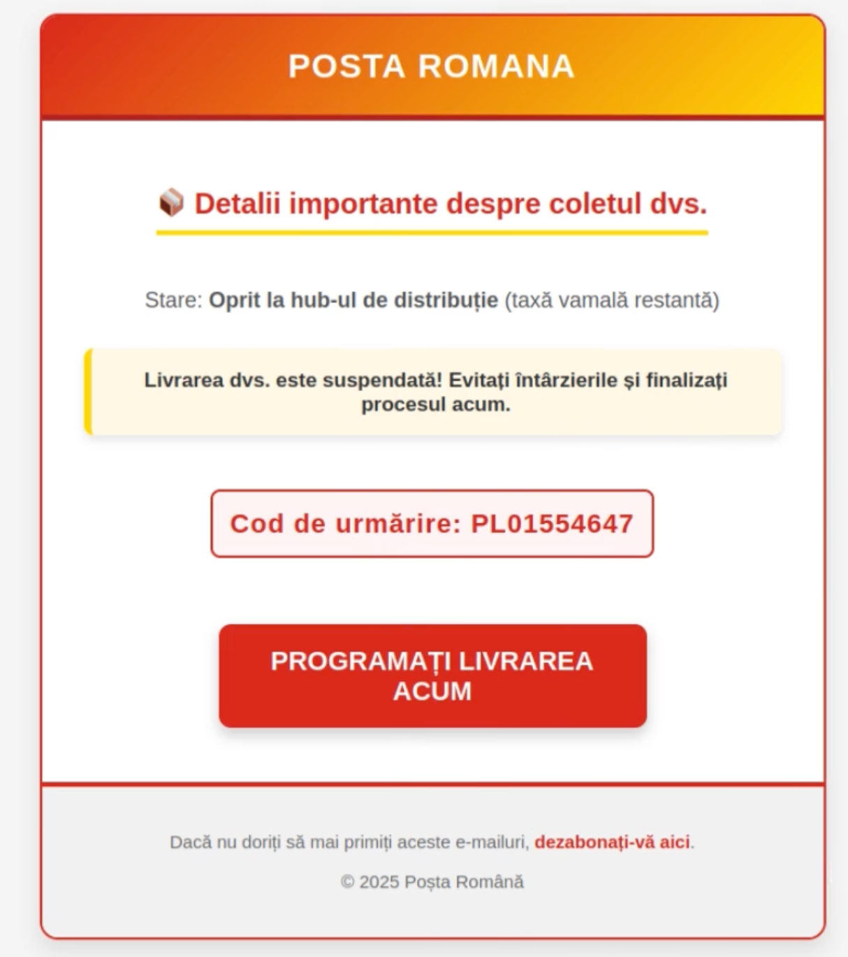 8. Scam-uri cu colete blocate – Poșta Română și curieri